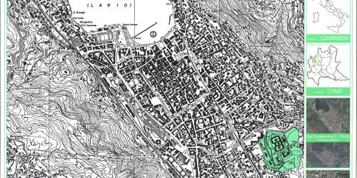 Localizzazione su Carta Tecnica Ragionale (CTR Lombardia, scala 1:10.000) dell’Ospedale psichiatrico San Martino di Como all'interno del contesto urbanizzato (elaborazione grafica di Sara Raggi)