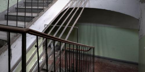Veduta di una scala con le misure di protezione contro i fenomeni di suicidio (foto Raniero Carloni, 2012)