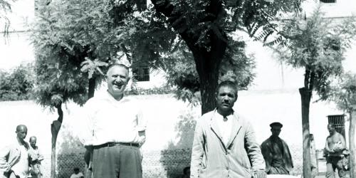 Teramo, Ospedale psichiatrico Sant’Antonio Abate, momenti di svago all’interno della corte a giardino nell’insula a nord-ovest: sullo sfondo si riconosce il padiglione meglio illustrato nella foto